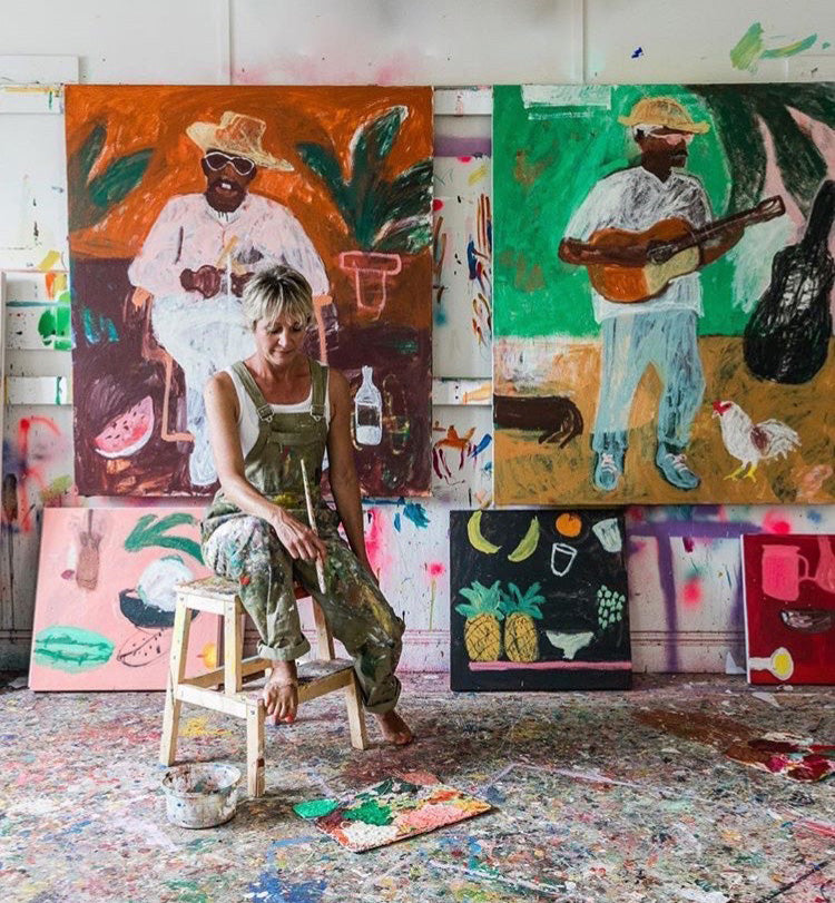 Emma Gale’s work is a celebration colour, shape and texture. Her subjects are everyday people doing everyday things in countries all over the world. She takes inspiration from other cultures and their daily rituals and routines. Her love for Africa plays a special part in her work. She first visited Kenya when she was 15 where she was mesmerised by the people, their beauty their culture and the stunning landscape. In 1990-1993 she lived in Cairo, Egypt where she stablished the Tukul Craft Workshop in Cairo. This is a non-profit organization to train Sudanese refugees the techniques and skills in textile screen printing and design. In 2019 she visited Ethiopia with Create Impact an NGO working hand in hand with remote communities in Ethiopia to provide education, water and health care projects that create a lasting impact. She continues to support these charities and others through her work.